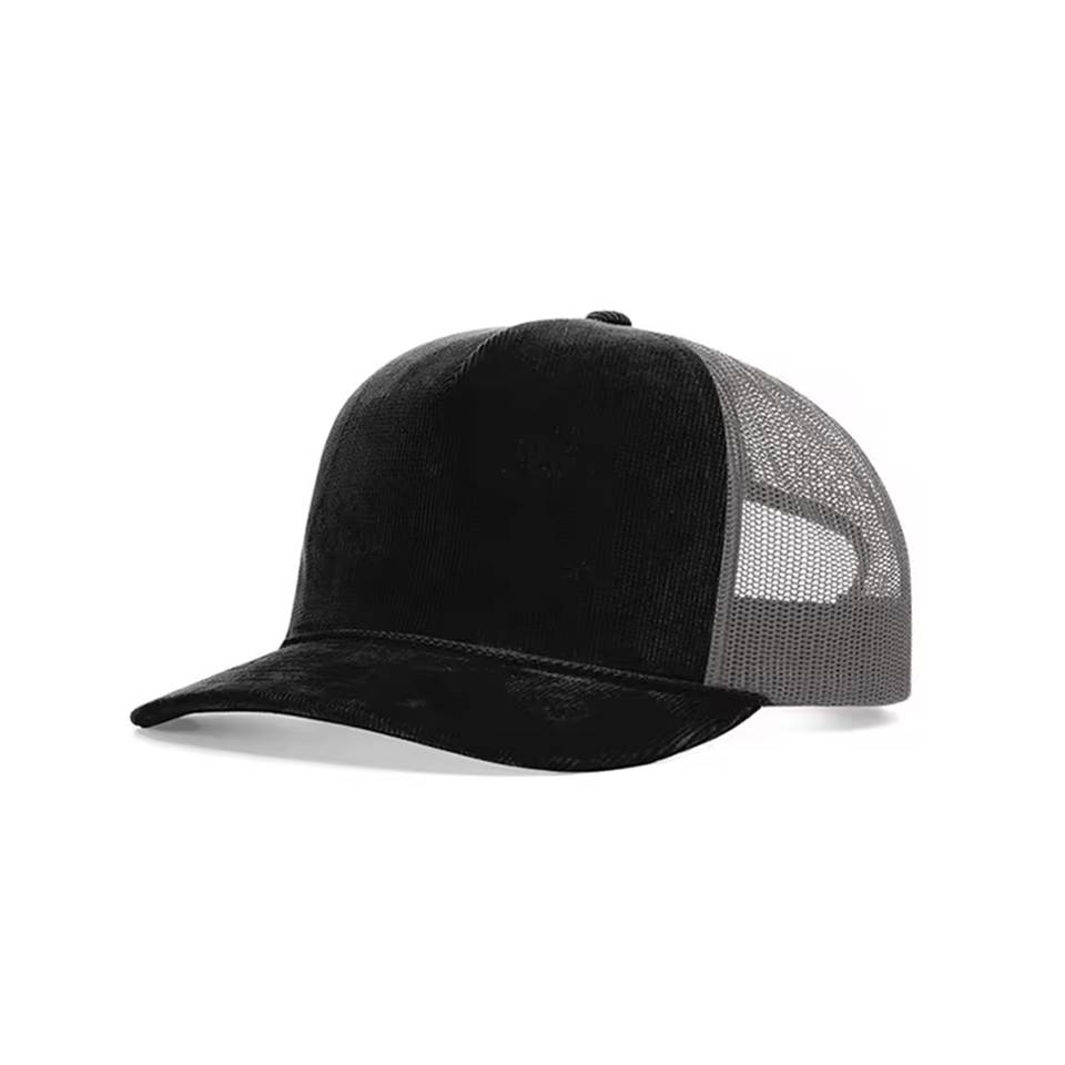 Casquette de camionneur en maille velours côtelé brodée avec logo personnalisé Casquette de camionneur pour hommes à 5 panneaux
