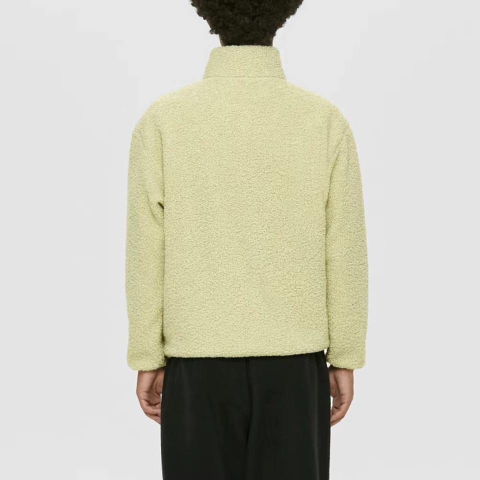 Veste d'hiver coupe-vent zippée surdimensionnée pour homme en polaire sherpa et toile, avec broderie de logo personnalisé et logo frontal sur le col montant
