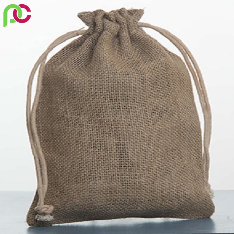 Sac à cordon de jute beige souple brodé de logo personnalisé pour l'emballage de café et de thé et pour offrir en cadeau Style toile de jute de Hesse