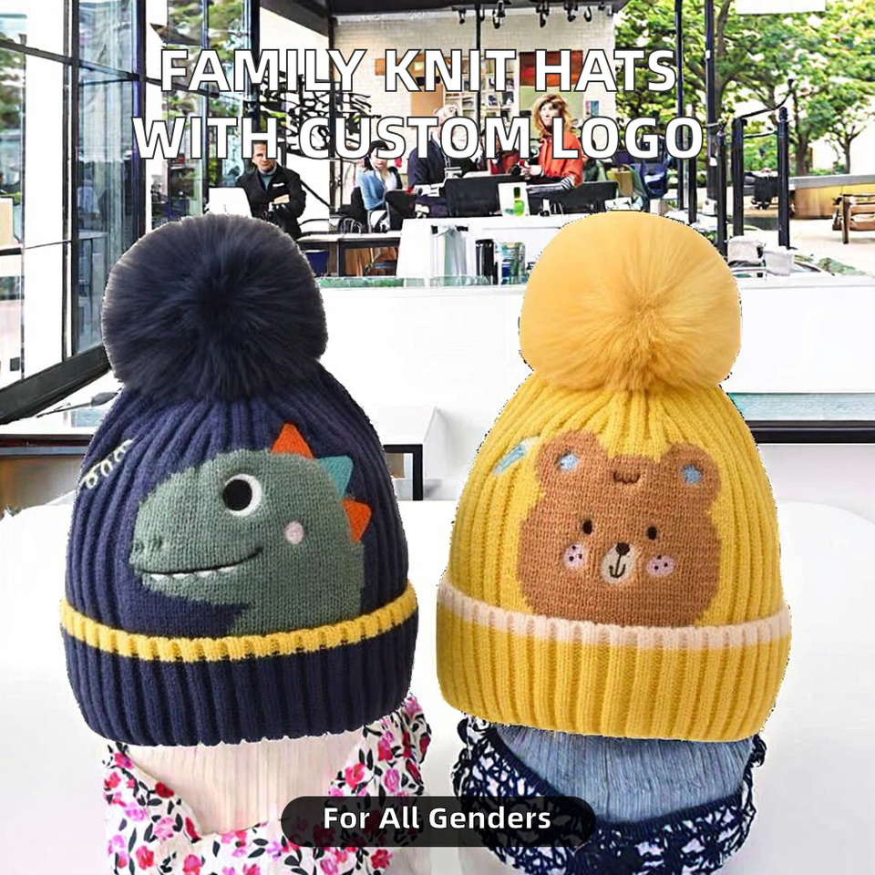 Bonnet d'hiver tricoté brodé avec logo personnalisé Bonnet chaud pour bébés, enfants et tout-petits, taille de toute la famille