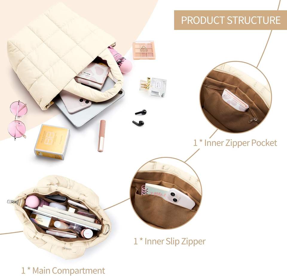 Sac à main pour femme avec broderie de logo personnalisé, sac fourre-tout matelassé, léger, compartiments pour ordinateur portable, poignées, sacs à main, sac de plage pour voyage