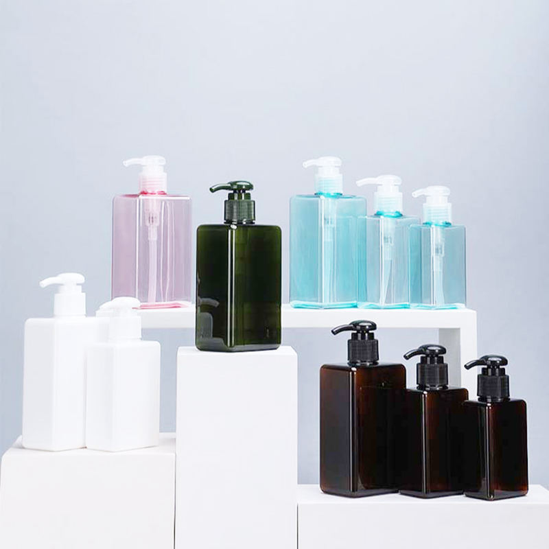 Bouteille en plastique PET vide carrée personnalisable avec logo, 300 ml, 500 ml, pour lotion, gel douche, shampoing, avec pompe pulvérisatrice
