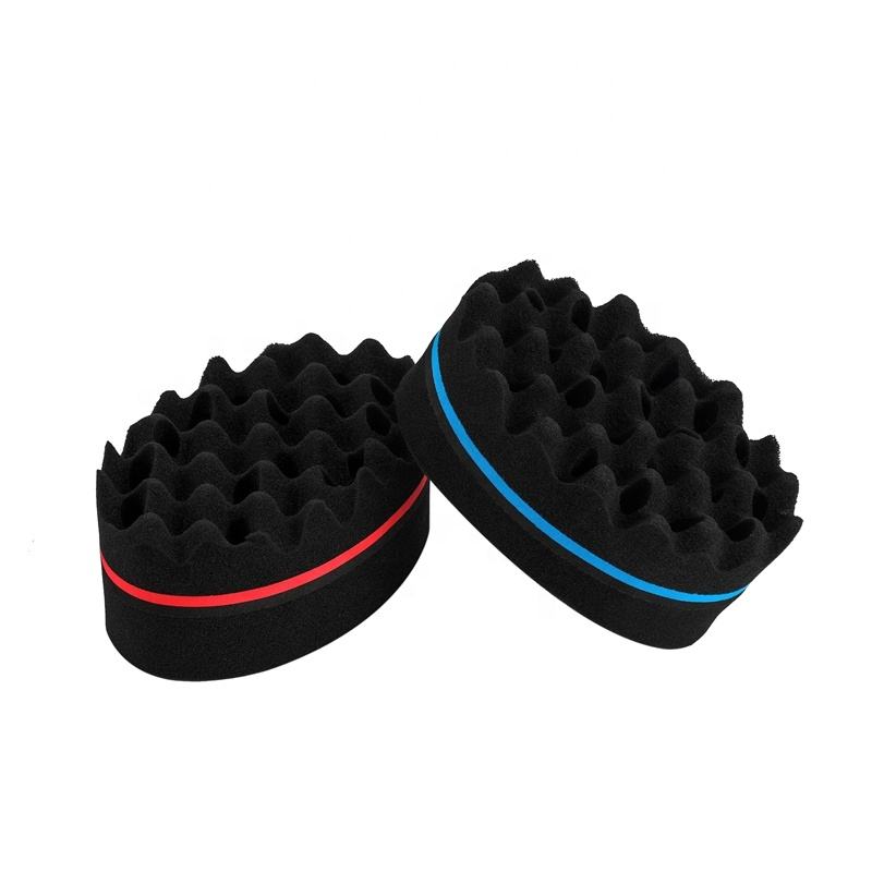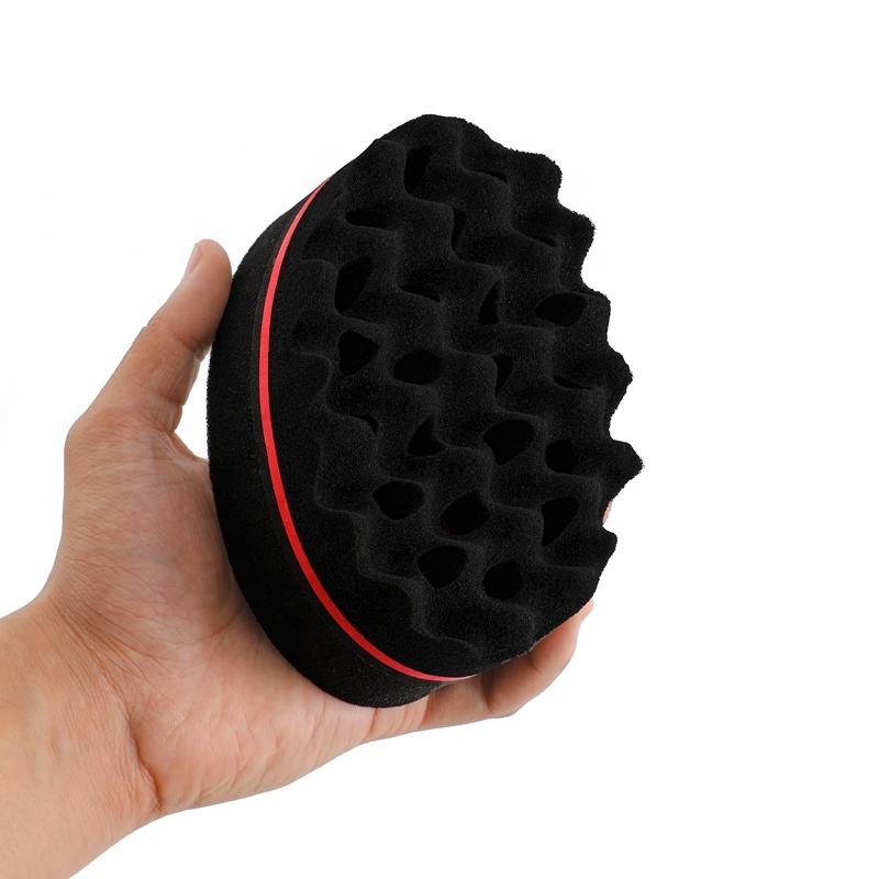 Éponge en mousse noire pour cheveux bouclés, à double face, effet vague, pour hommes, avec logo personnalisé gravé, compatible froid, imprimée en usine, pour usage domestique