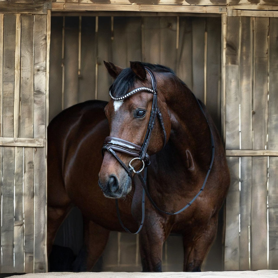 Bride d'essorage en cuir équestre avec logo personnalisé Bride de cheval occidentale à coutures fantaisie Caractéristiques de sécurité Bride de course Sac inclus