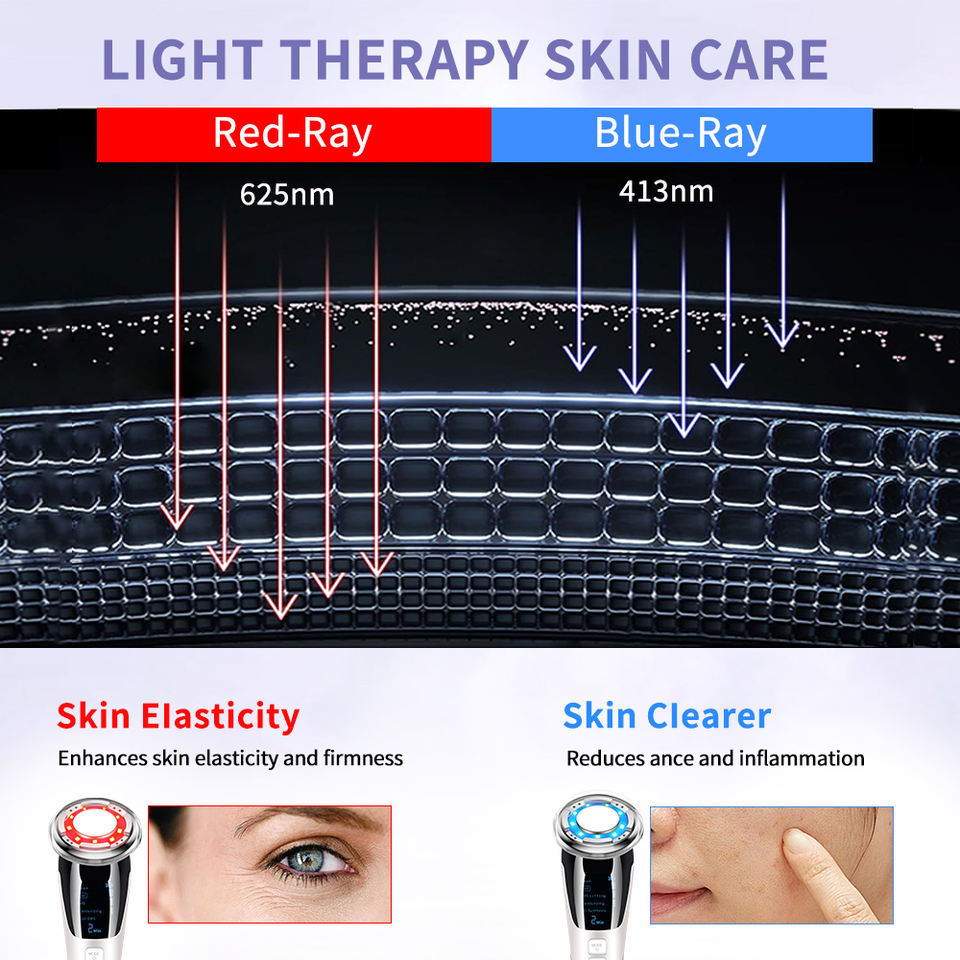 Microcourant, chaud/froid, vibration sonique ; LED