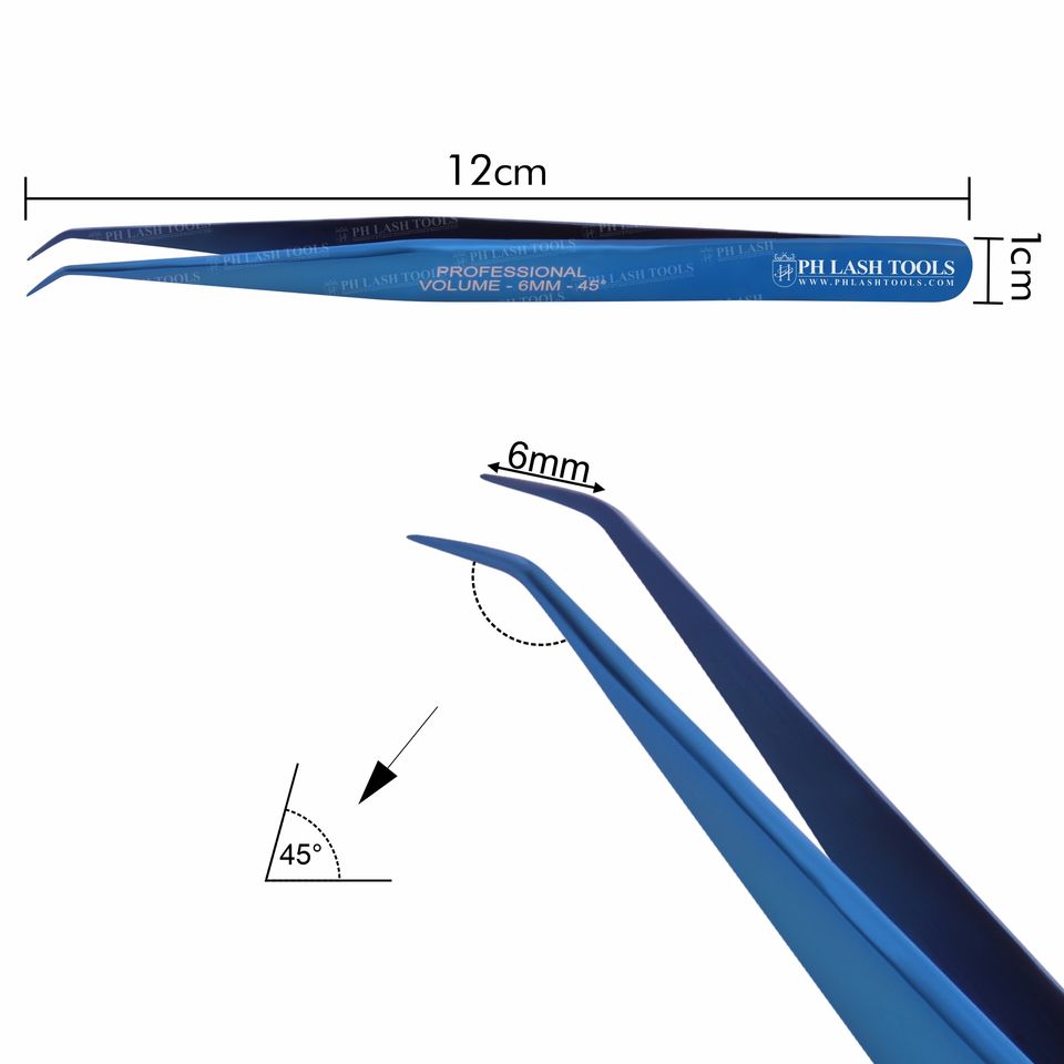 Pince à cils Logo personnalisé, dispositif pour faux-cils, couleur bleue, Angle 6mm, 45 degrés, étiquette privée cintrée, Volume de 6mm