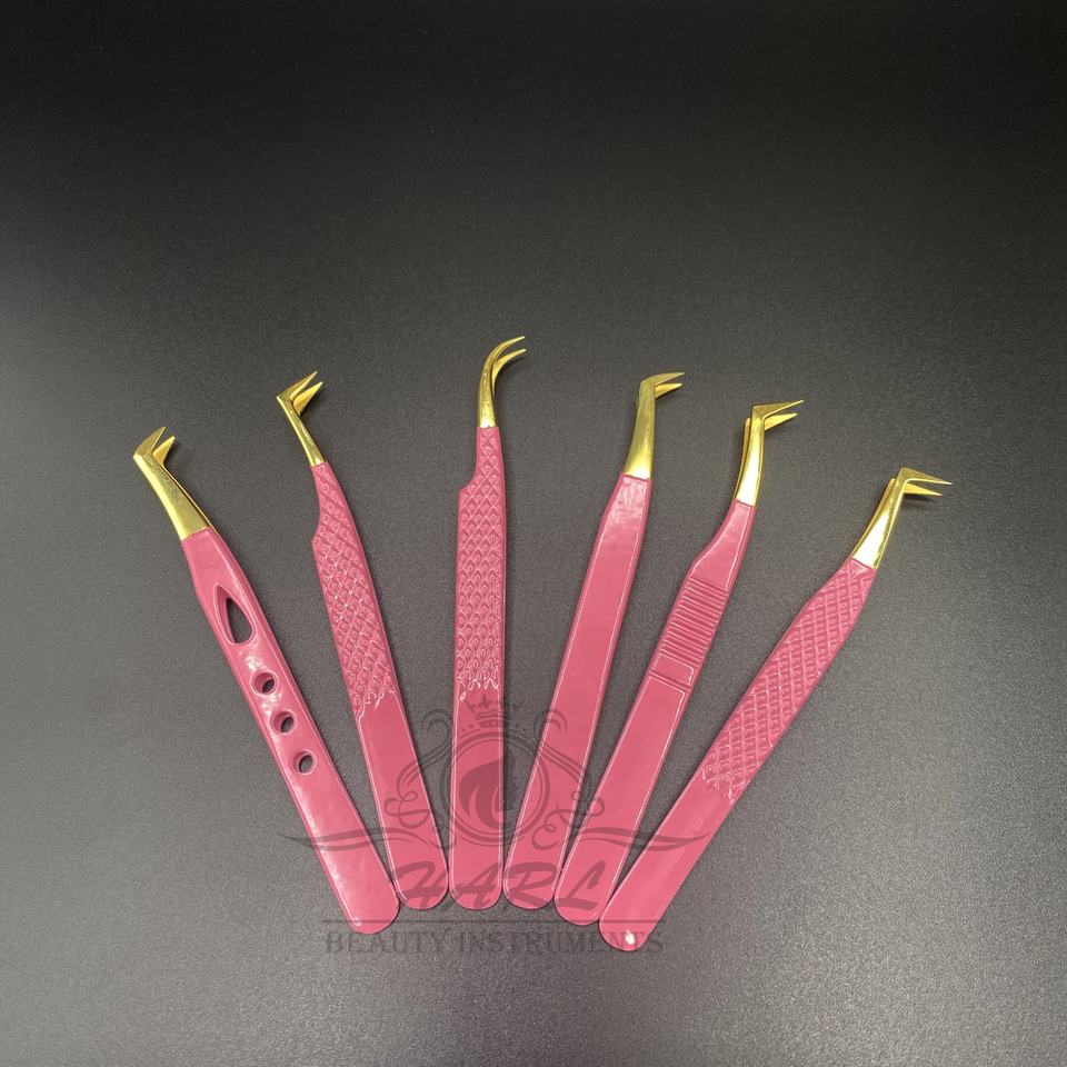 Ensemble de pinces à cils avec logo personnalisé Pince à épiler en fibre de fibre d'acier inoxydable avec pointes roses et dorées pour bébé