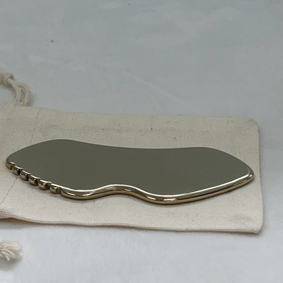 Grattoir Gua Sha en acier inoxydable personnalisé avec logo, pour lifting du visage, mini grattoir en métal à dents de poisson pour massage corporel