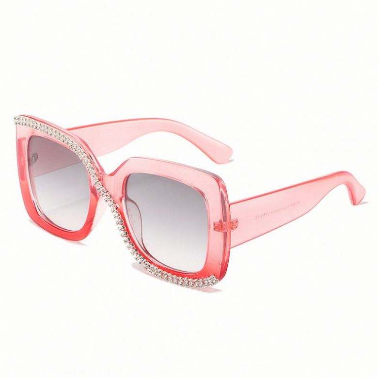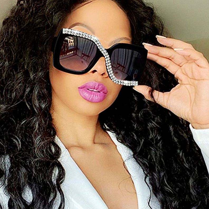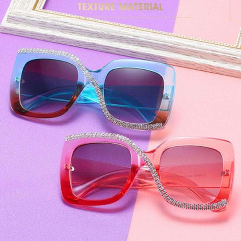 Lunettes de soleil carrées vintage de luxe avec logo personnalisé, vente en gros à prix d'usine, lunettes de soleil surdimensionnées en strass UV400 pour femmes