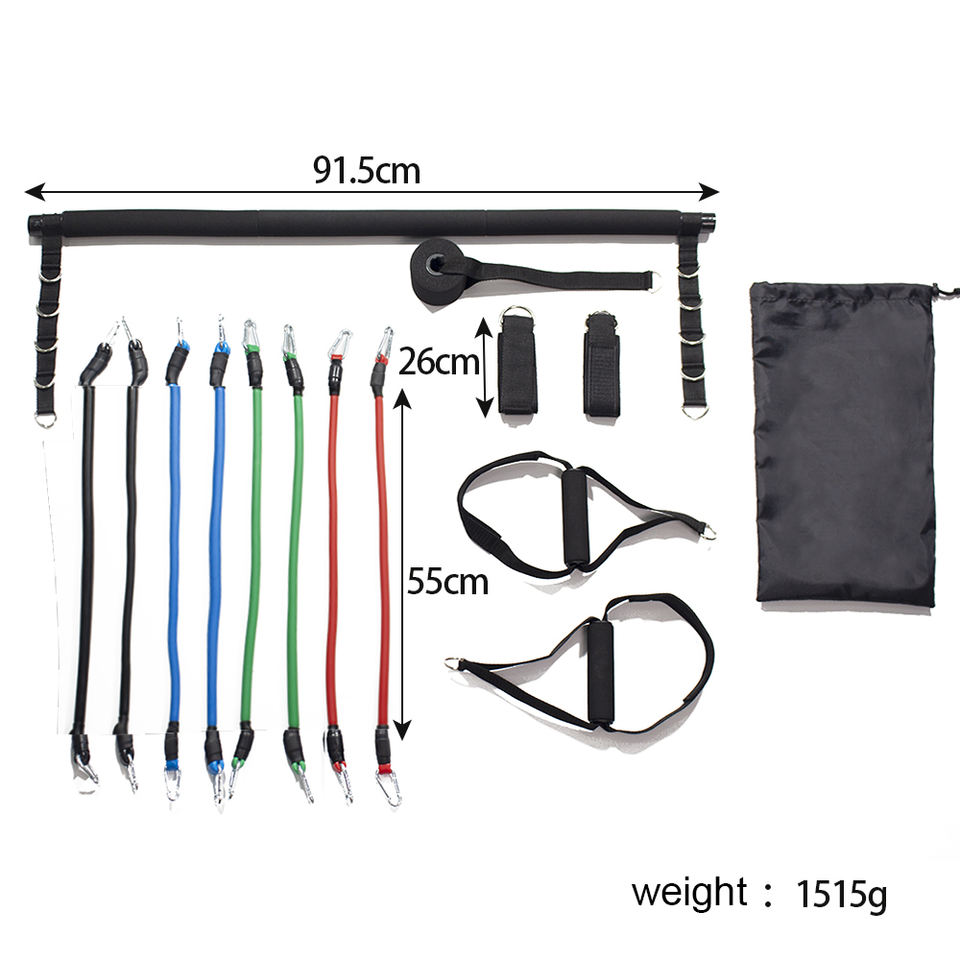 Kit de bâton de yoga noir multifonctionnel pour salle de sport avec logo personnalisé, sections d'usine, réglable avec bandes de résistance