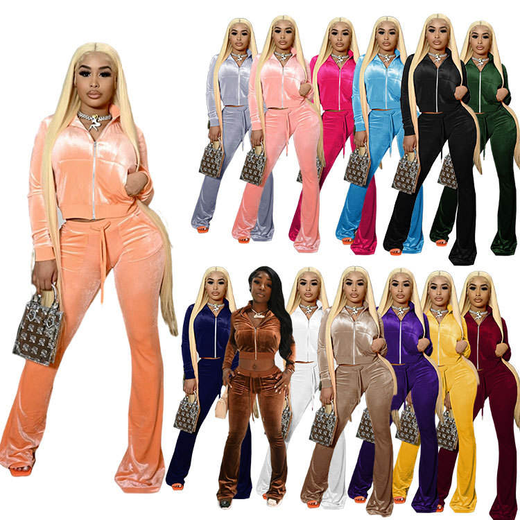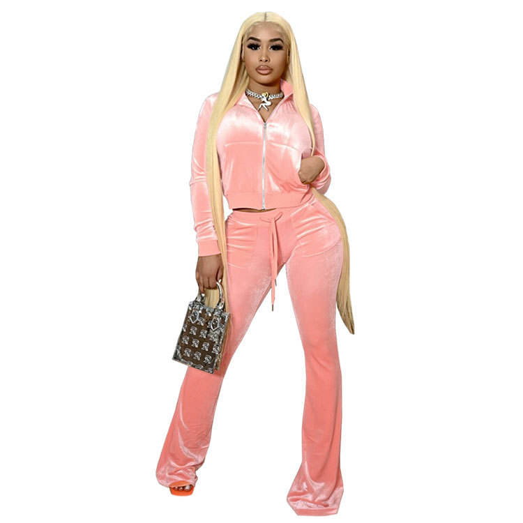 Ensemble Velours Deux Pièces Personnalisé Automne Hiver 2024 : Survêtement Capuche et Pantalon Droit pour Femme