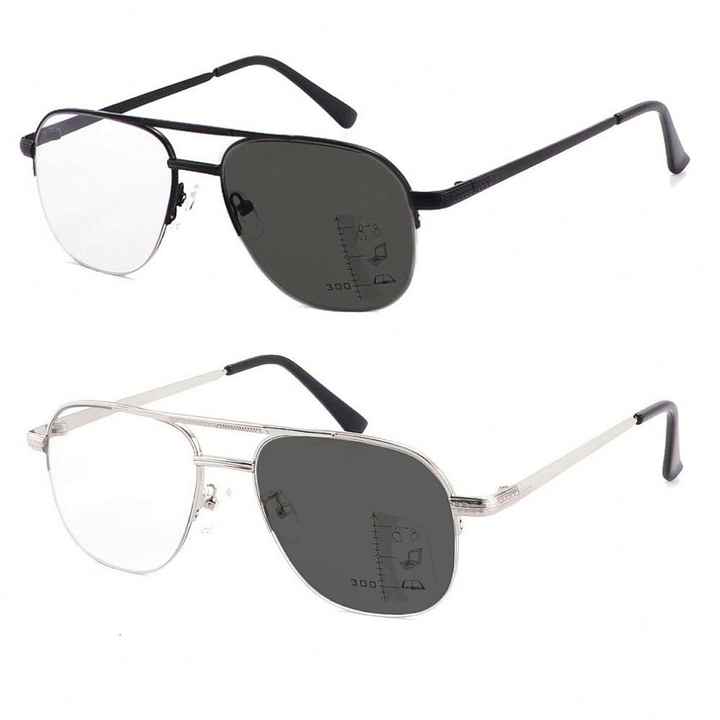 Lunettes de lecture progressives multifocales anti-lumière bleue en alliage, style pilote, photochromiques, pour hommes, avec logo personnalisé
