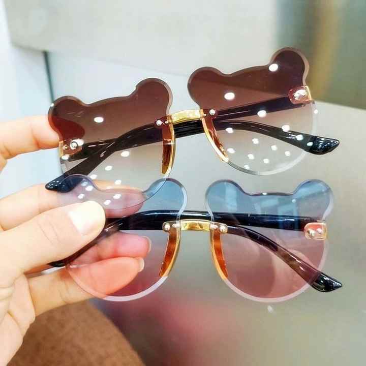 Lunettes de soleil sans monture pour enfants, avec logo personnalisé, mignonnes, pour filles, UV400, en forme d'ours