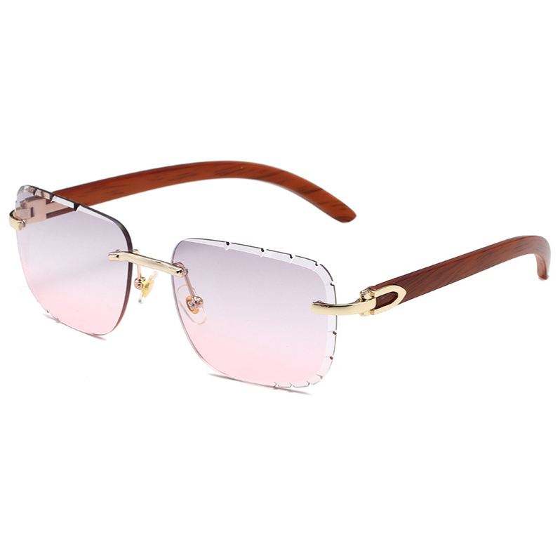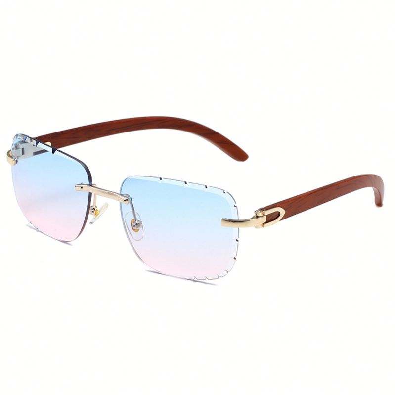 Lunettes de soleil élégantes à dégradé de couleurs avec logo personnalisé, protection UV400, monture en bois sans bordure, carrées, pour hommes et femmes