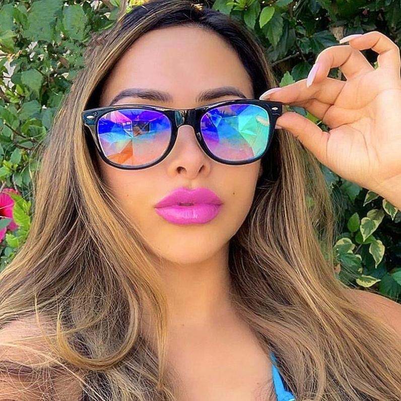 Lunettes de soleil rétro personnalisées avec logo pour festival de mode, lunettes carrées pour femmes, effet kaléidoscope diamanté, pour hommes et femmes
