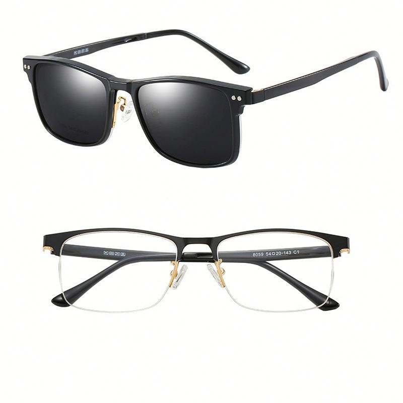 Lunettes de vue à demi-monture pour hommes avec logo personnalisé, lunettes optiques polarisées à clip magnétique