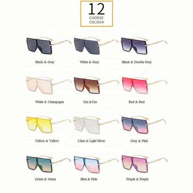 Lunettes de soleil surdimensionnées à monture large en alliage, avec logo personnalisé, nouvelle collection, verres dégradés UV400, forme carrée plate, pour femmes