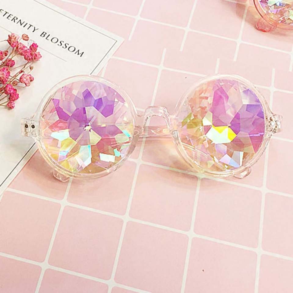 Lunettes de soleil personnalisées avec logo, lunettes de fête tendance, lunettes rondes psychédéliques à lentilles prismatiques diffractées, lunettes de soleil kaléidoscope pour hommes et femmes