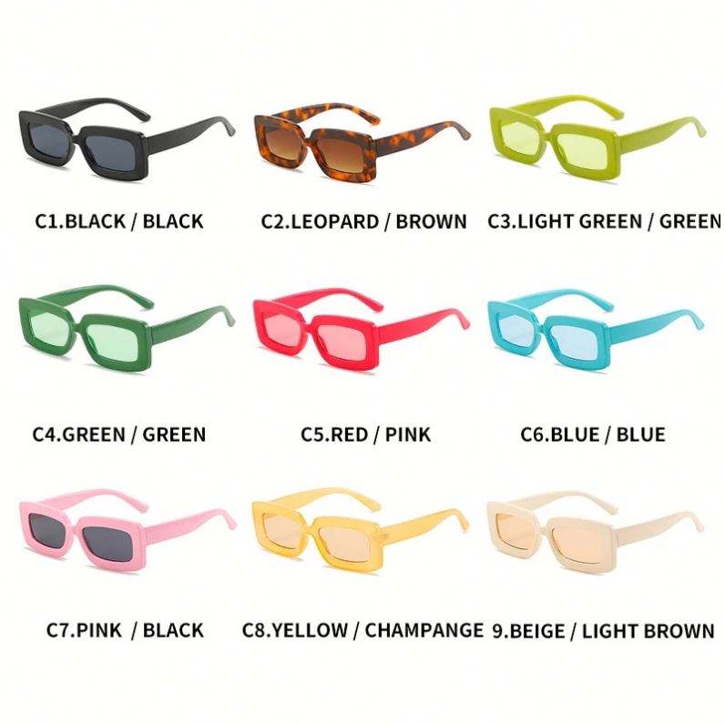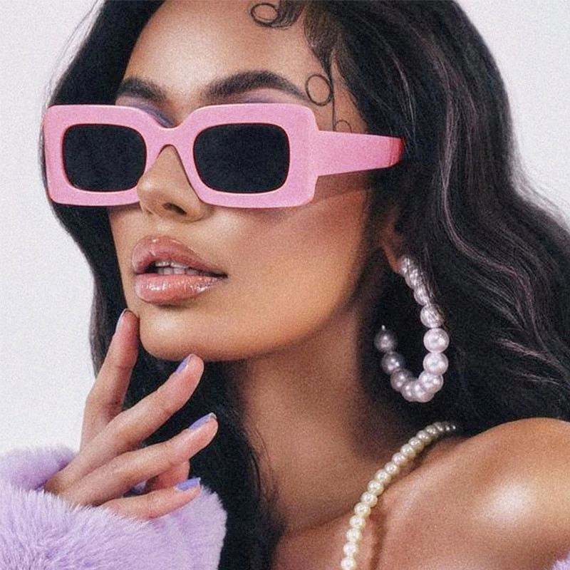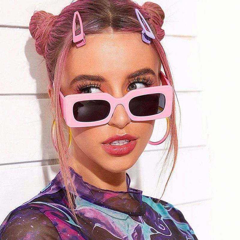 Lunettes de soleil rectangulaires roses tendance avec logo personnalisé pour femmes, lunettes de soleil à monture carrée petite taille aux couleurs acidulées pour femmes