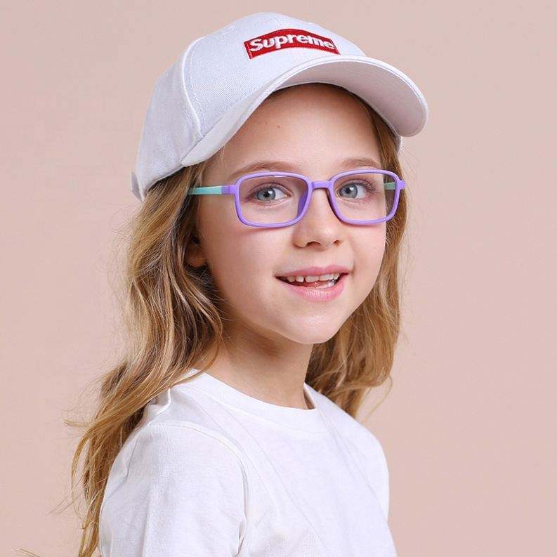 Lunettes anti-lumière bleue pour enfants, tendance, à la mode, avec logo personnalisé, en silicone souple, forme carrée, pour ordinateur, protection contre la lumière bleue
