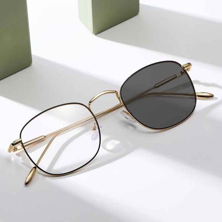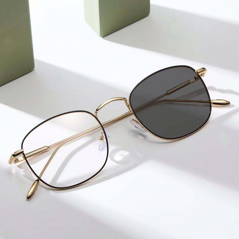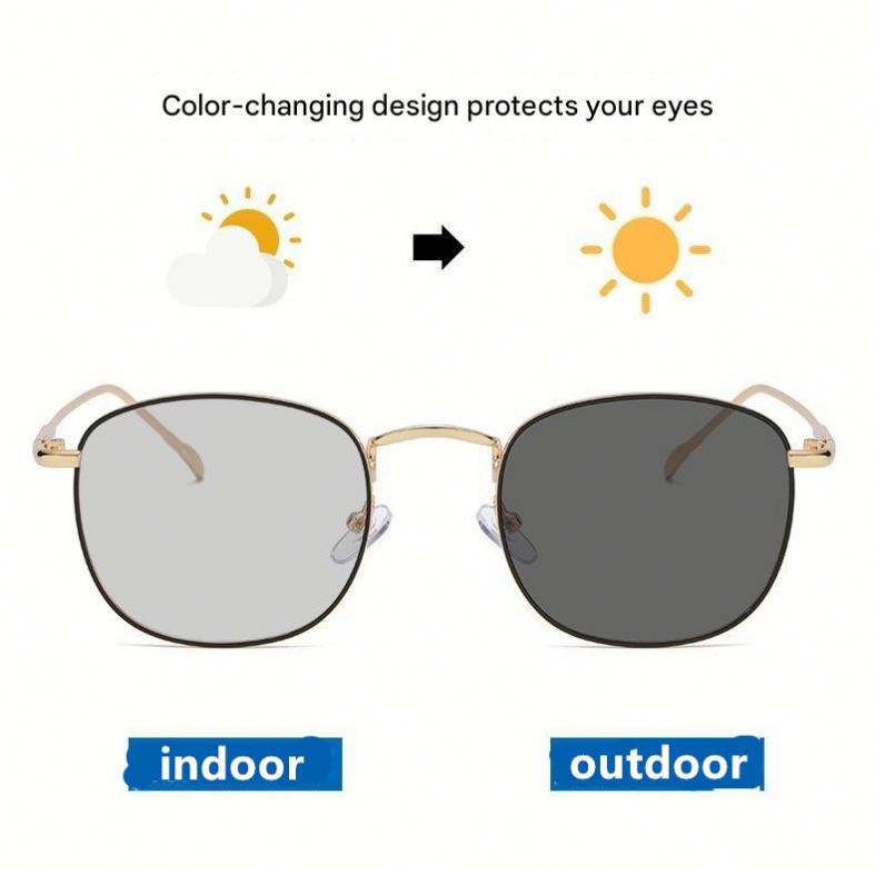 Lunettes de soleil photochromiques carrées avec monture en métal vintage à la mode avec logo personnalisé, anti-lumière bleue, pour hommes et femmes