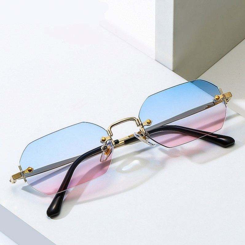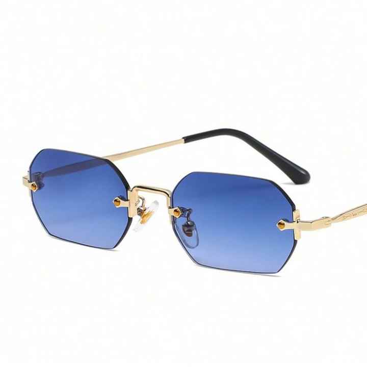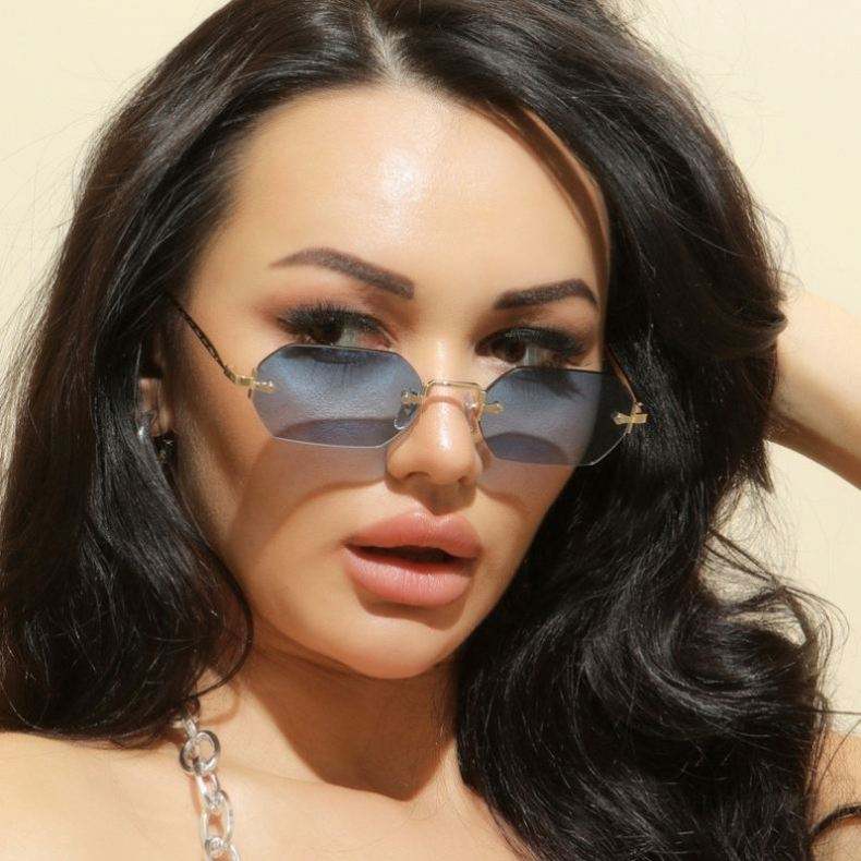 Lunettes de soleil vintage à monture carrée petite et personnalisée avec logo pour femmes, lunettes de soleil polygonales sans monture pour femmes