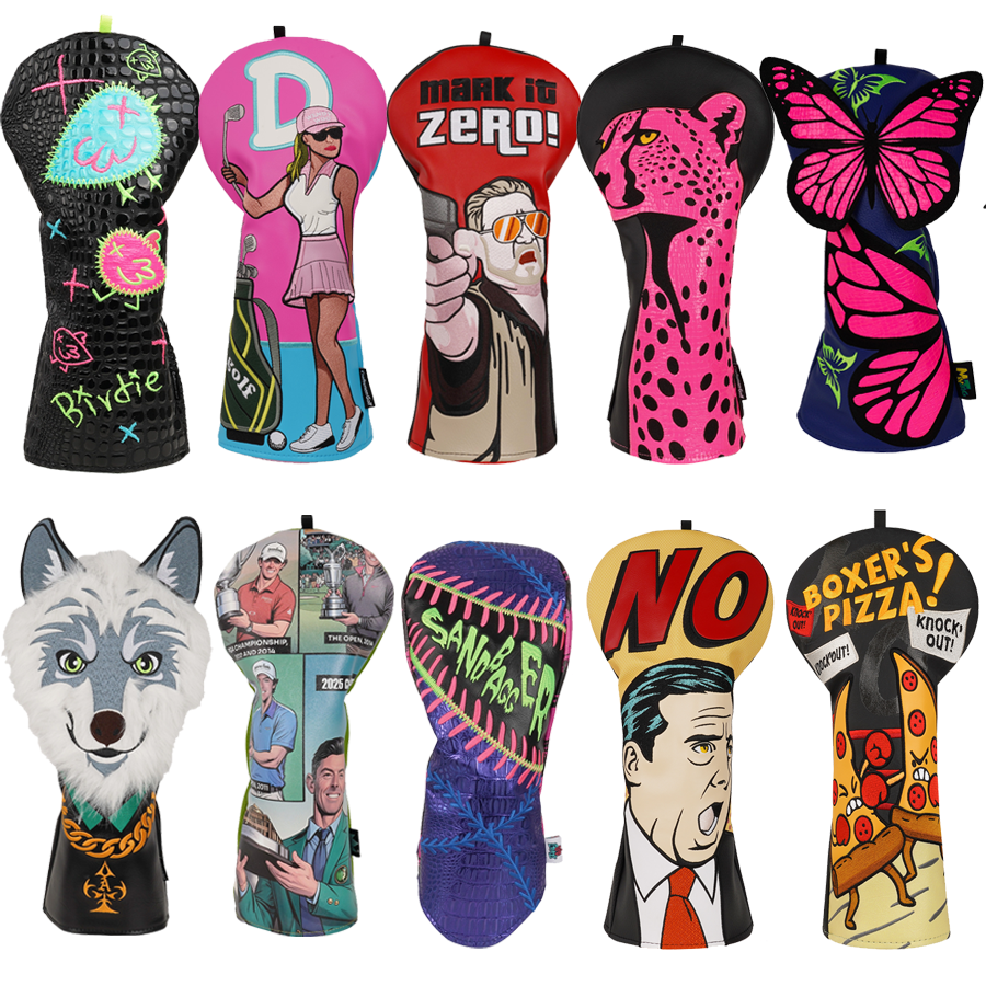 Couvre-chef de golf Flamingo avec logo personnalisé Couvre-chef de golf en cuir PU Driver 1 Wood Club Covers