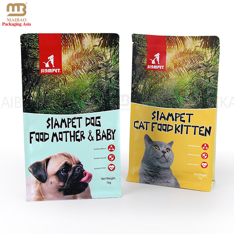 Sacs en plastique d'emballage alimentaire pour animaux de compagnie de chat à fond plat avec logo personnalisé pour nourriture pour chien 500g 1kg 2.5kg 10kg 15kg 20kg Sacs de stockage d'aliments pour animaux