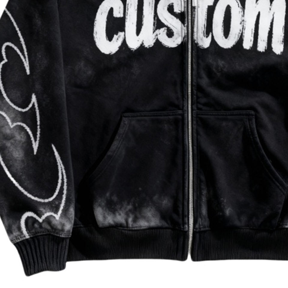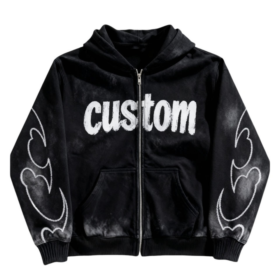Sweat-shirt à capuche zippé en molleton avec logo personnalisé, style streetwear Y2K, effet délavé, coupe oversize unisexe, veste graphique vintage