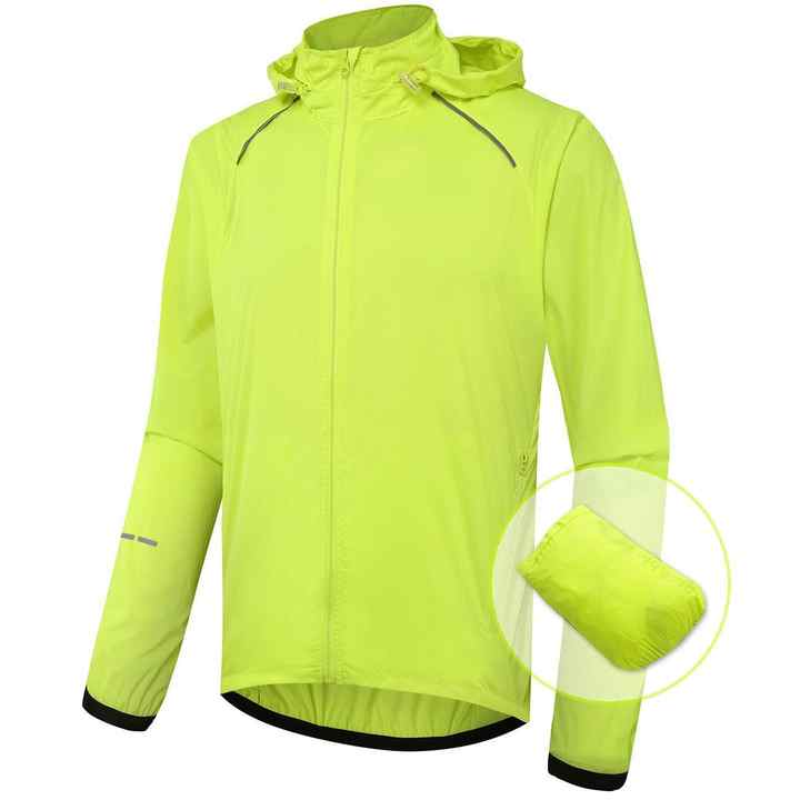 Veste coupe-vent pour homme en coton 100% avec logo personnalisé, vert fluorescent, à capuche, style vintage, pour les sports de plein air, la course à pied et l'entraînement