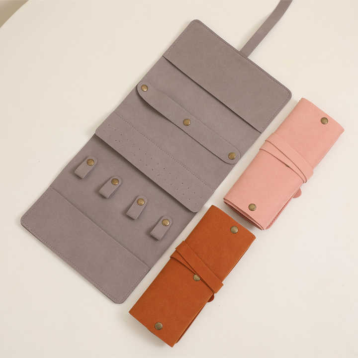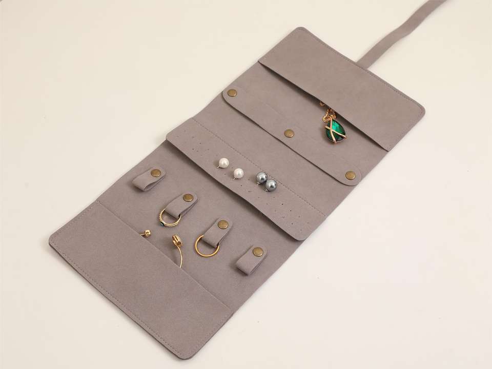 Custom Logo Foldable Microfiber Velvet Jewelry Roll 1.4mm Thick Travel Jewelry Organizer Pouch for Earrings Rings
