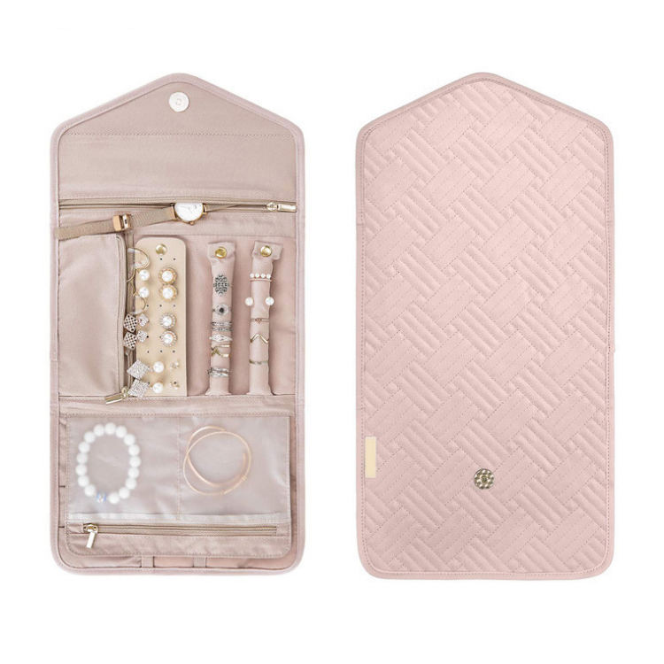 Logo personnalisé pliable rouleau bijoux vitrine organisateur stockage Voyage-friendly pour collier boucles d'oreilles bagues bracelet