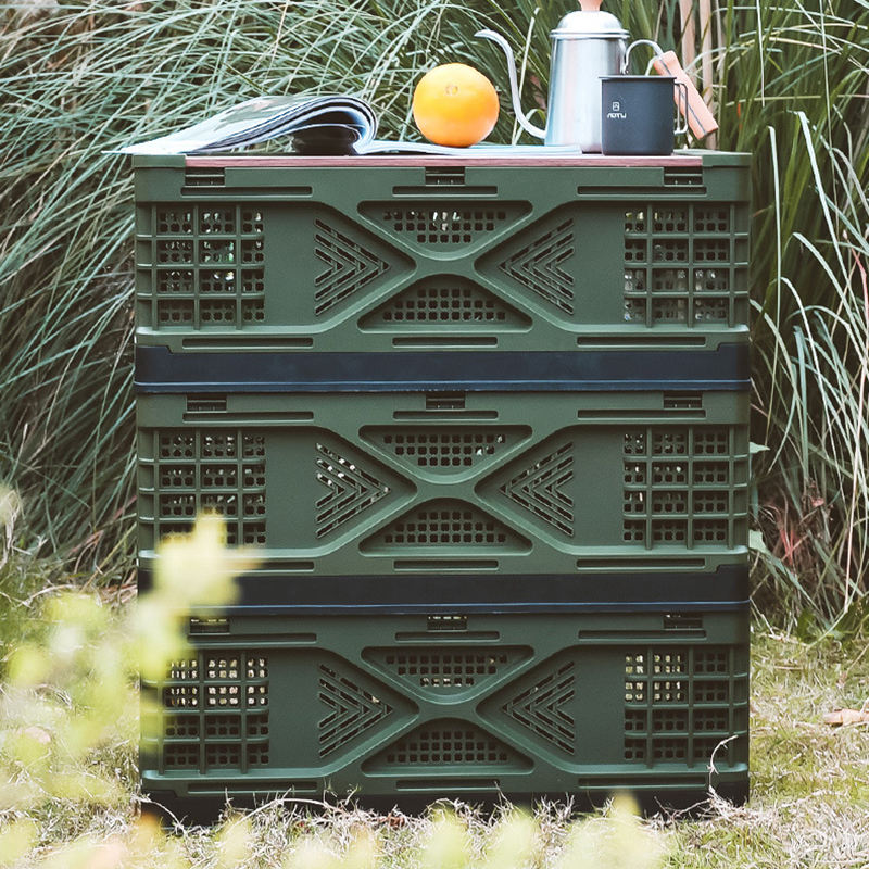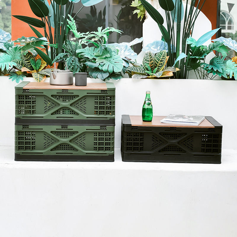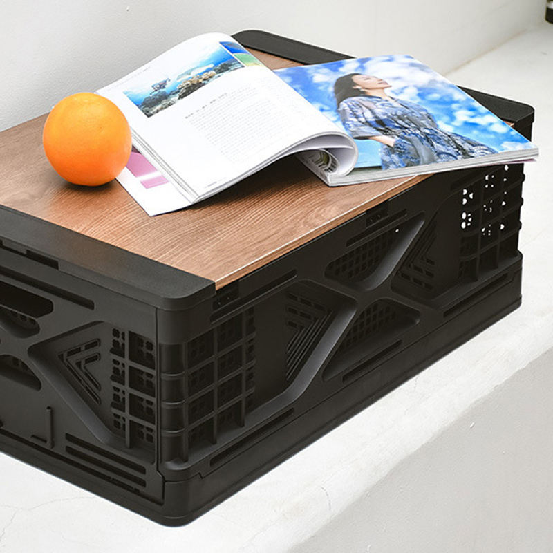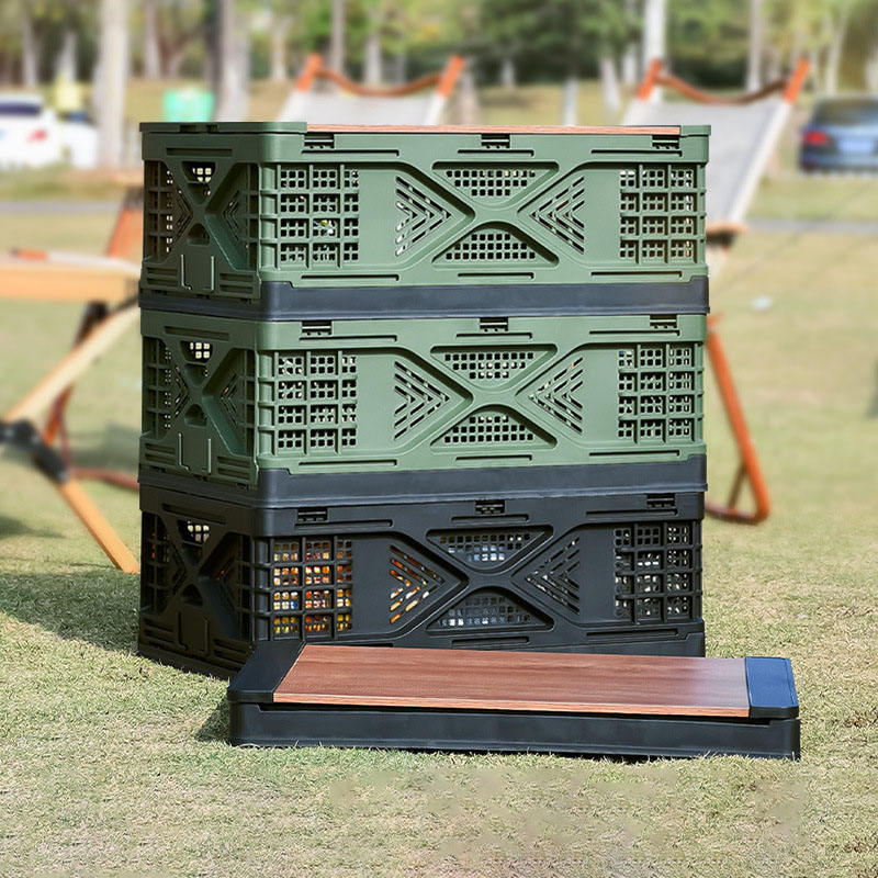 Bacs empilables pliables avec Logo personnalisé, caisse mobile en plastique, couvercle en bois, boîte de Transport de stockage en plastique