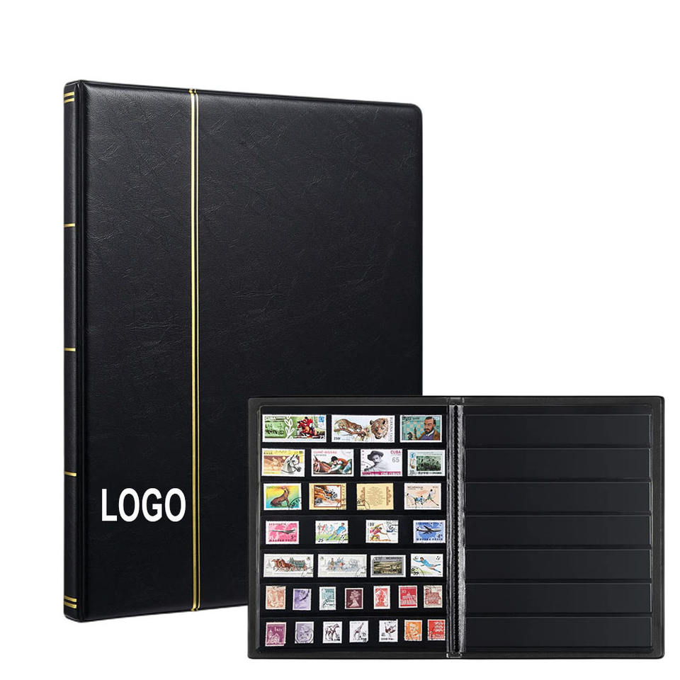 Album de collection de timbres pour collectionneurs Logo personnalisé Design gratuit Couverture anti-poussière double face 10 feuilles 7 rangées de pochettes