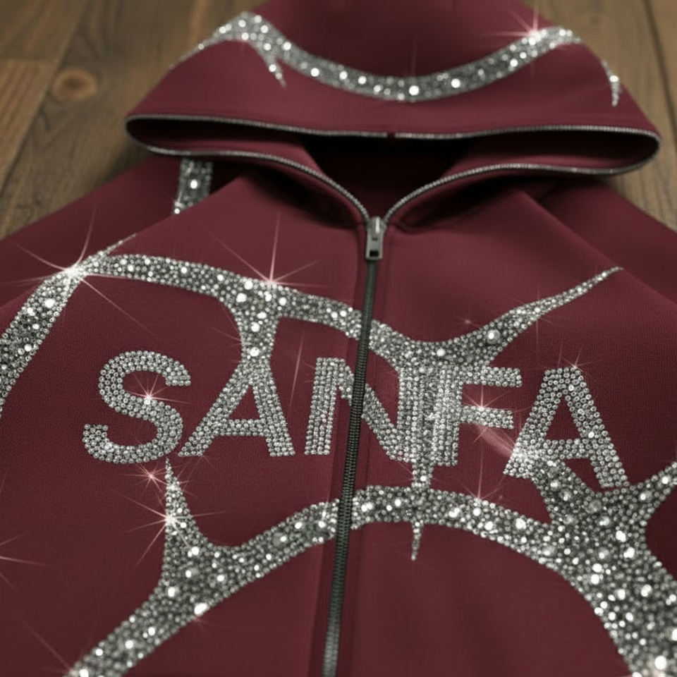Survêtements en molleton français avec logo personnalisé, strass, vêtements décontractés pour hommes, molleton lourd, broderie de strass
