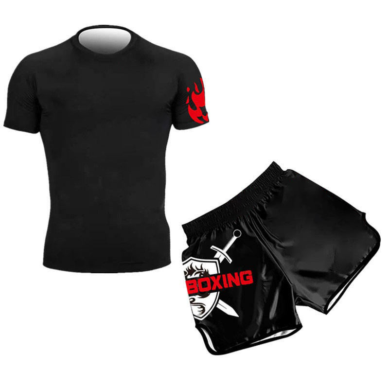 Ensemble short de boxe et t-shirt à compression extensible personnalisé avec logo pour adultes, entraînement de compétition MMA, léger