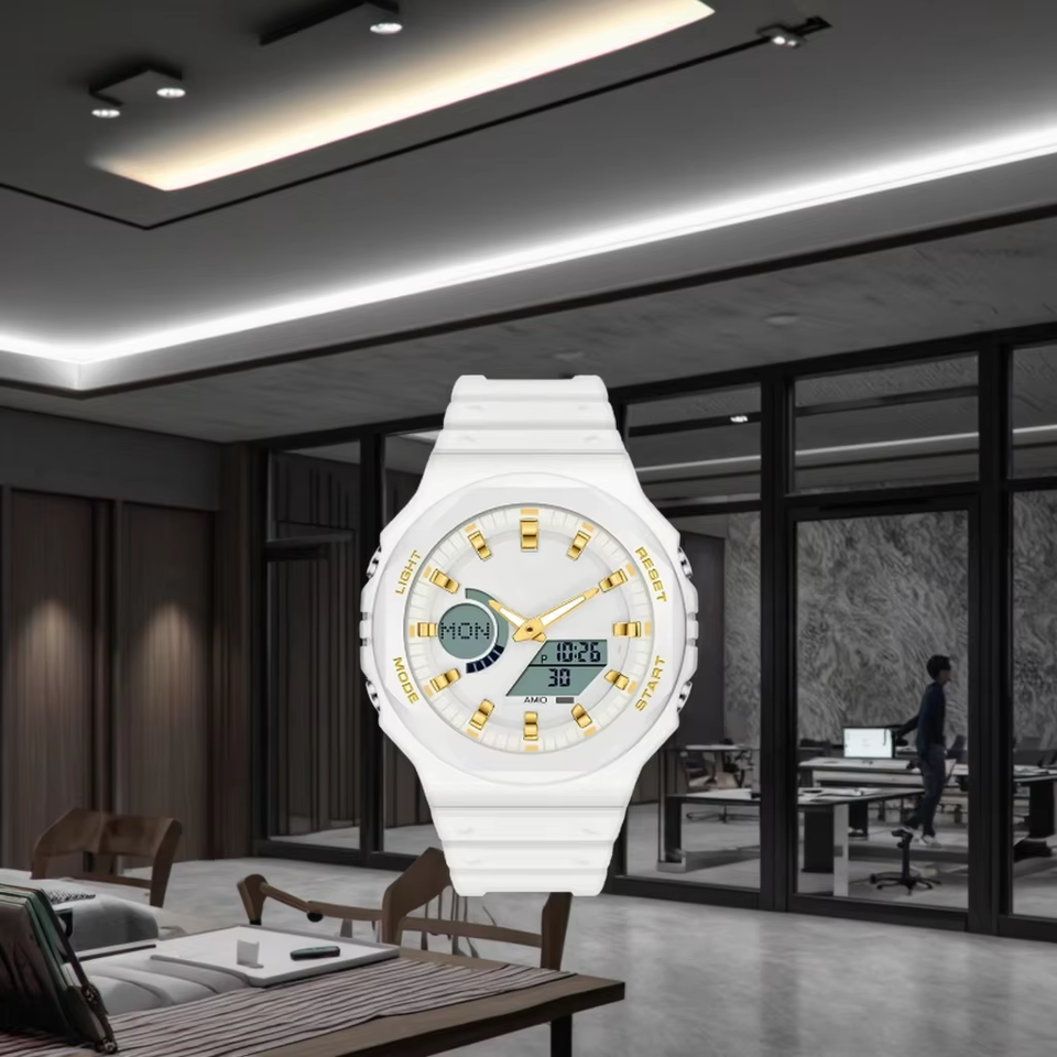 Montre sport numérique analogique Ga2100 avec logo personnalisé, bracelet en acrylique, boîtier en caoutchouc, chronographe, résistance à l'eau 20 BAR