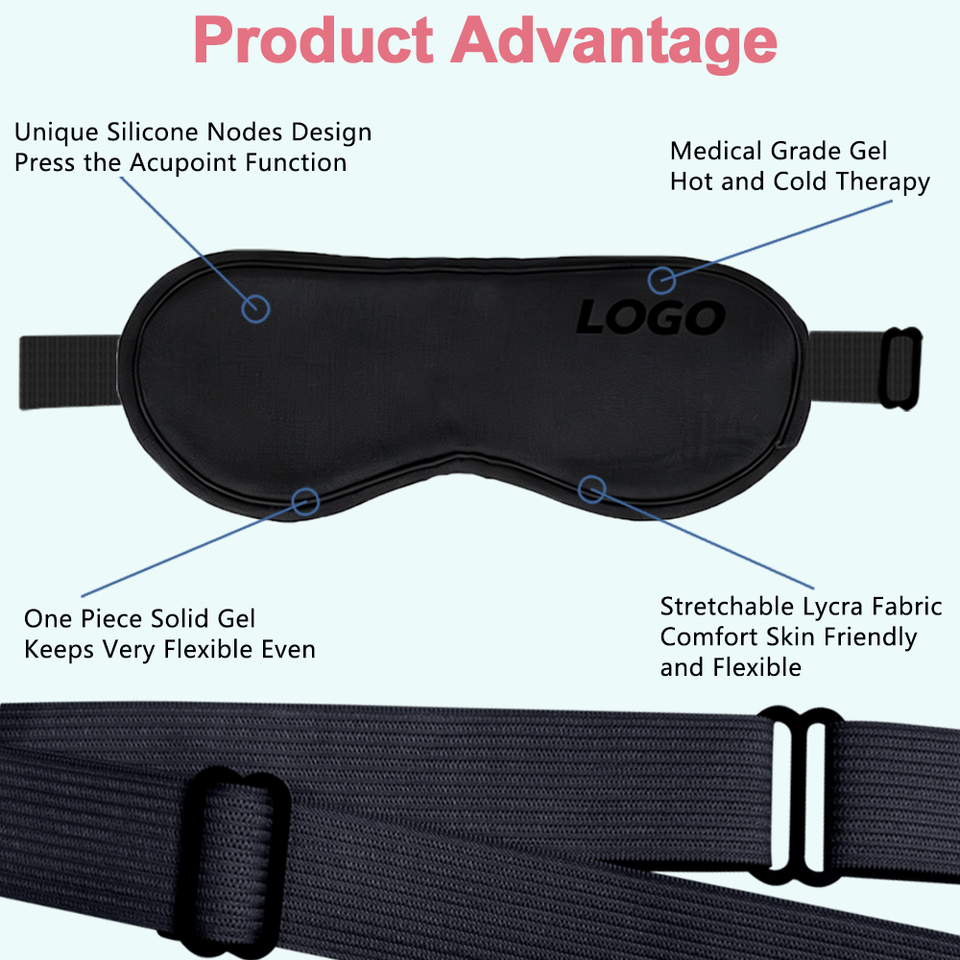 Masque pour les yeux en gel avec logo personnalisé, masque pour les yeux pour dormir, masque chaud et froid, masque pour les yeux en gel de soie