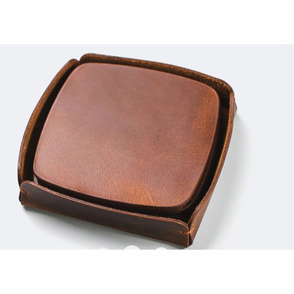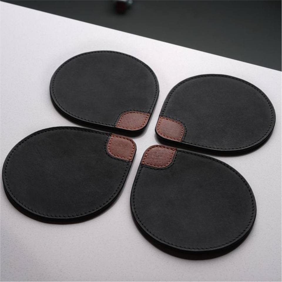 Sous-verres carrés en cuir véritable avec logo personnalisé, épais, en cuir de vachette, pour la restauration et l'hôtellerie, ensemble de sous-verres en cuir avec support