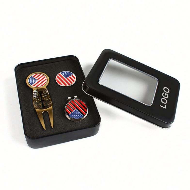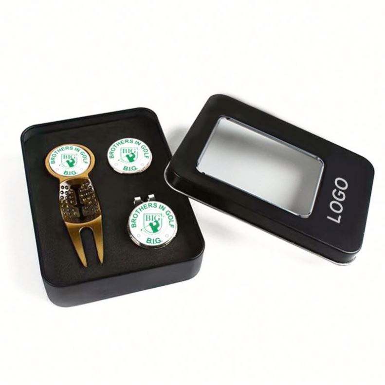 Ensemble d'accessoires de golf personnalisés avec marqueur de balle, outil de réparation de divots, clip de chapeau et tee pour la Fête des Pères, les événements professionnels ou le Nouvel An
