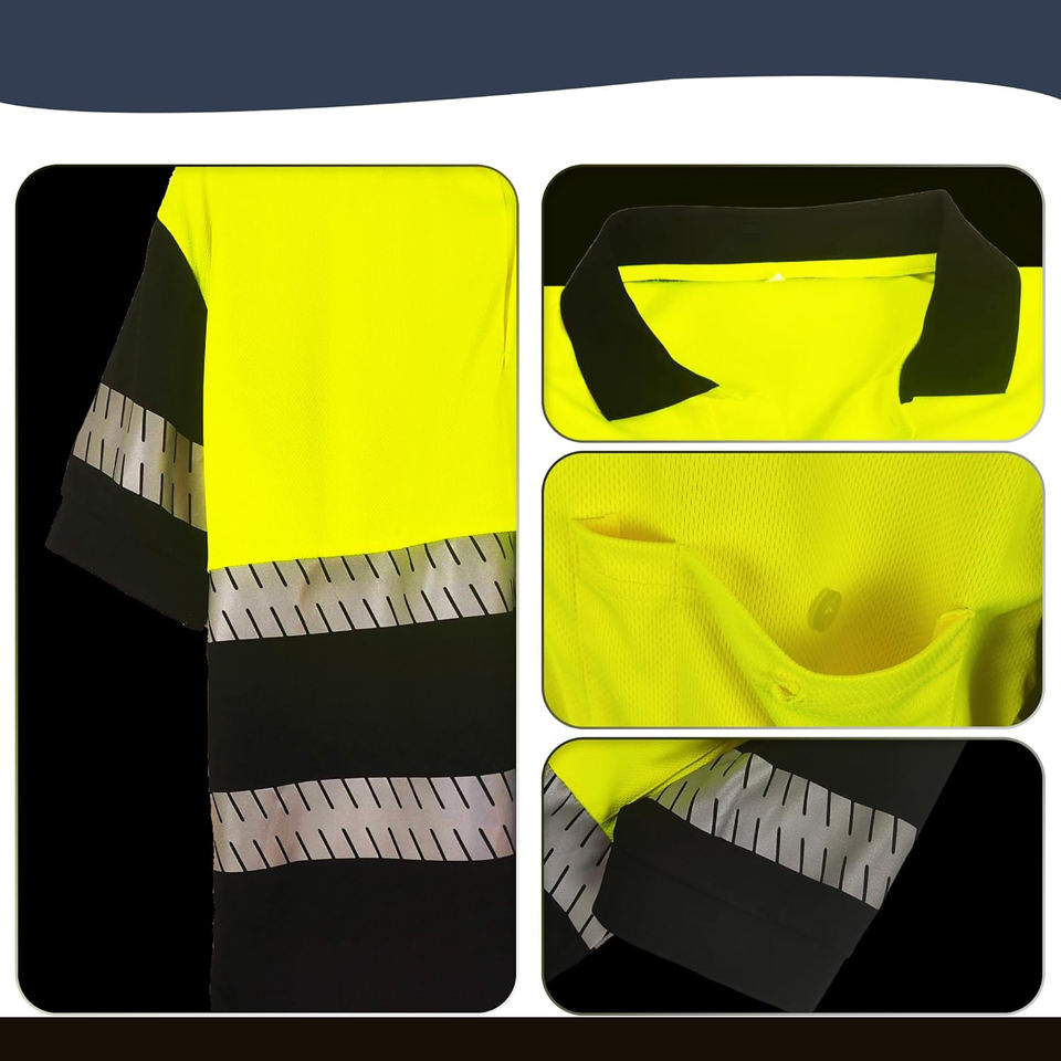 Polo de sécurité réfléchissant vert et noir avec logo personnalisé, manches courtes, vêtements de travail avec bandes réfléchissantes robustes sur les manches et la taille