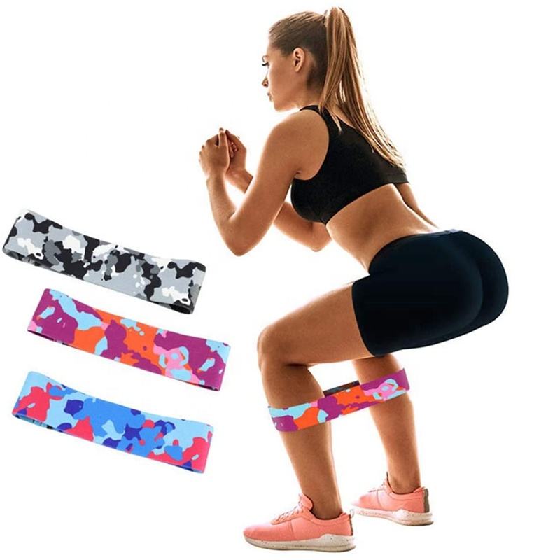 Bandes de résistance pour les hanches, en camouflage gris, avec logo personnalisé, antidérapantes, unisexes, pour le yoga, l'étirement et l'entraînement