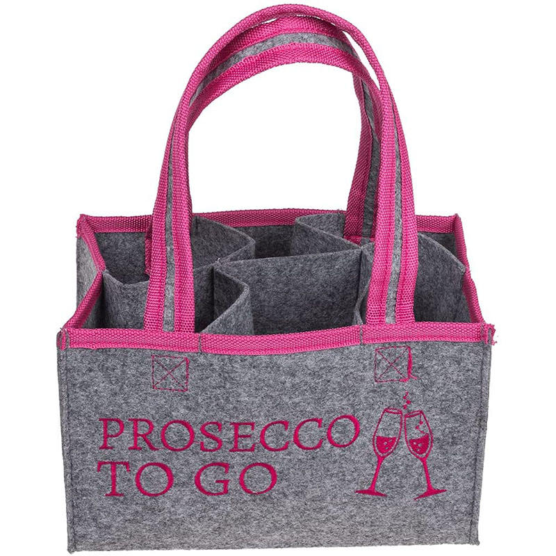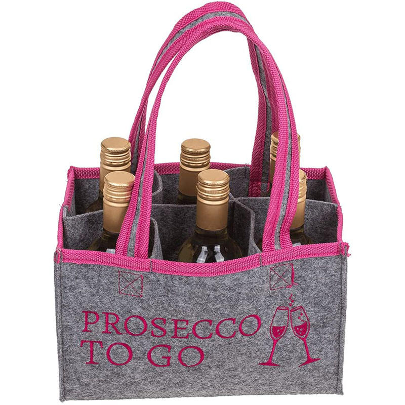 Sac à vin en feutre gris personnalisé avec logo, pour 6 bouteilles, sac à vin durable pour plusieurs bouteilles avec accents roses