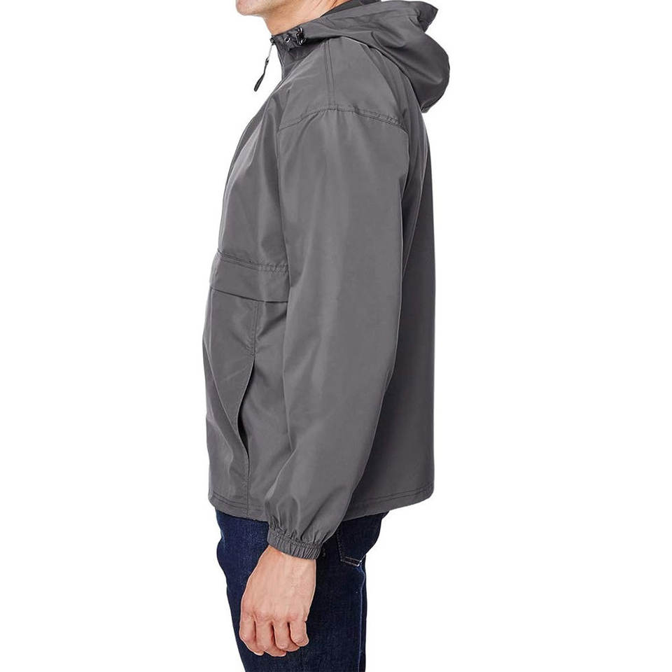 Veste coupe-vent grise personnalisable avec logo pour homme, imperméable, à col zippé, à capuche, pour activités sportives en extérieur, vente en gros, manteau d'entraînement