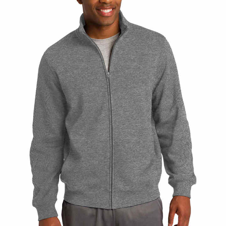 Veste zippée grise personnalisable avec logo pour homme, sweat-shirt polaire à col montant, survêtement vierge, vêtements de sport décontractés, veste d'entraînement en gros