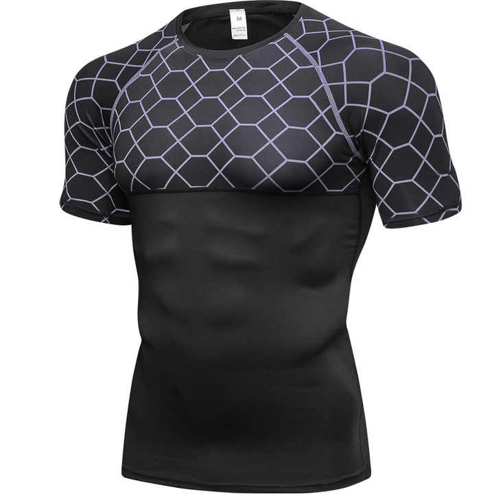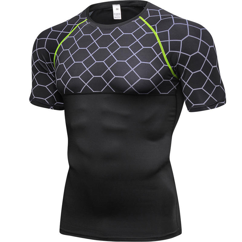 T-shirt de compression de gymnastique avec logo personnalisé Couche de base de musculation musculaire sportive pour hommes avec impression numérique Style sportif