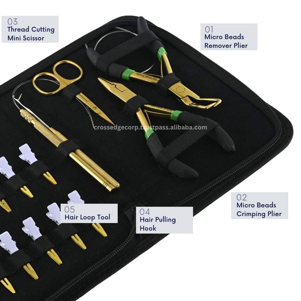 Custom Logo Hair Extension Tools Kit Micro Beads 80s Hair Crimper & Removal Pliers Tools Sectioning Clips Thread Shears & Hook