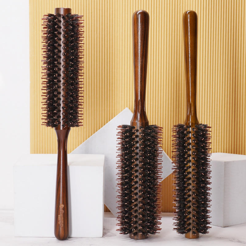 Brosse à cheveux en rouleau avec logo personnalisé, manche en bois de sanglier, peigne afro, brosses à cheveux écologiques pour femmes