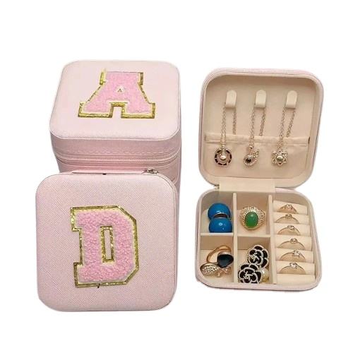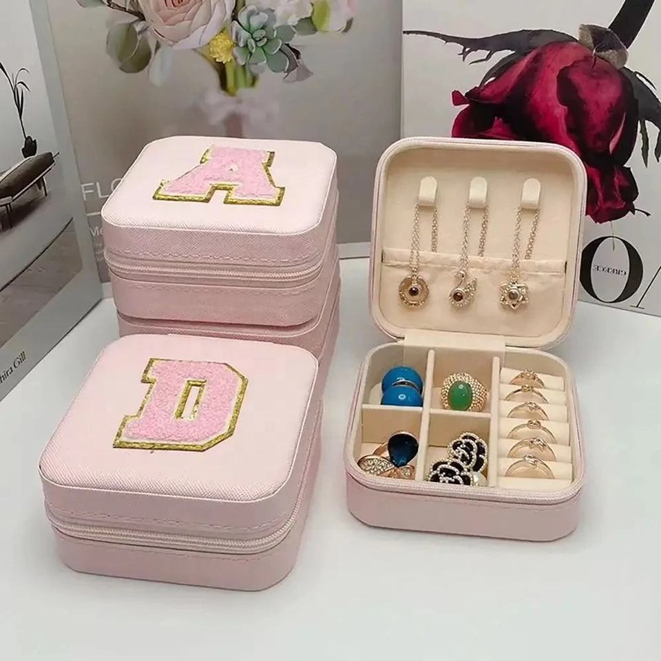 Petite boîte à bijoux de voyage faite à la main avec logo personnalisé Carré en cuir PU Collier Boucle d'oreille Bague Organisateur de bijoux Coffret cadeau