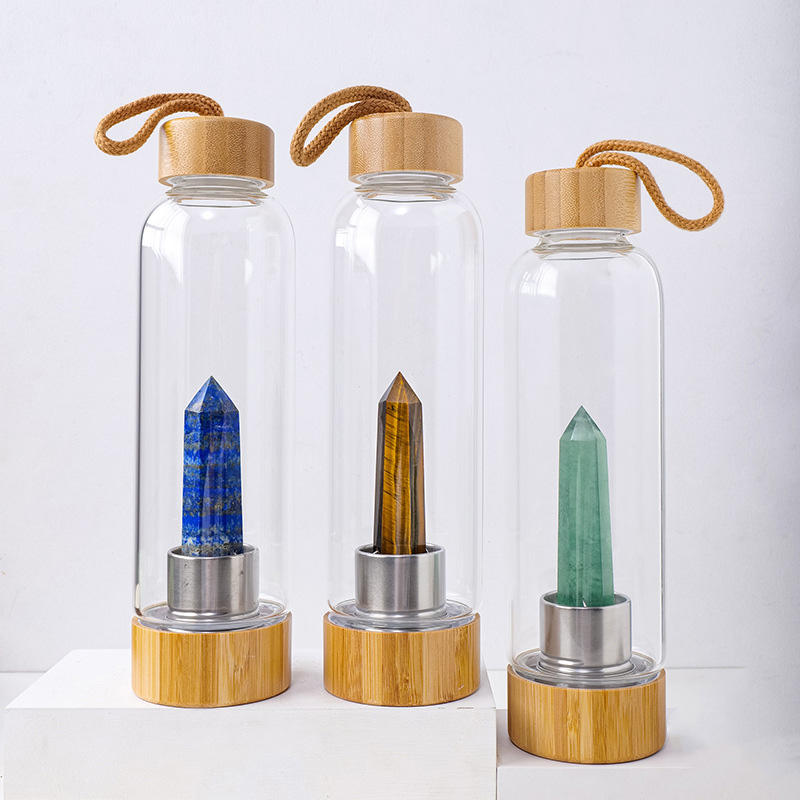Nom du produit:Bouteille d'eau en acier inoxydable et bambou avec cristal de guérison naturelle